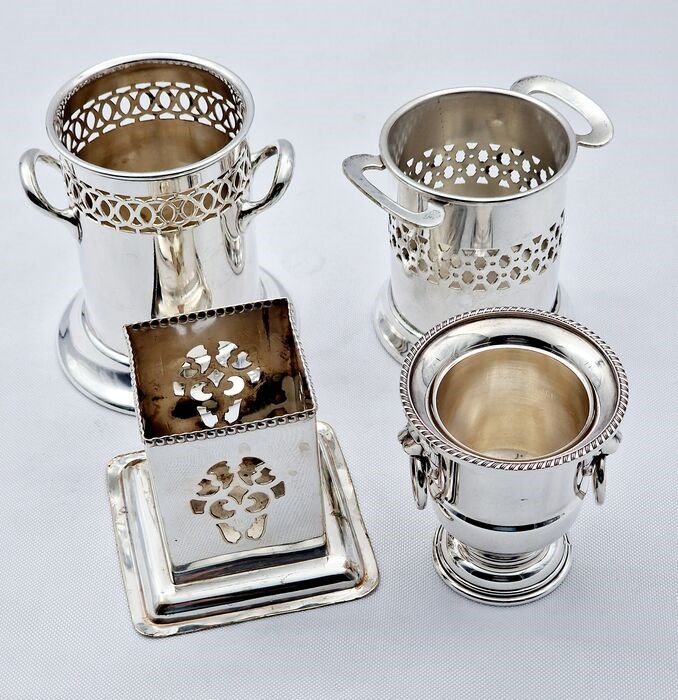4. Een verzilverde tandenstokerhouder gemaakt door Viners Ltd, actief in Sheffield sinds 1901.