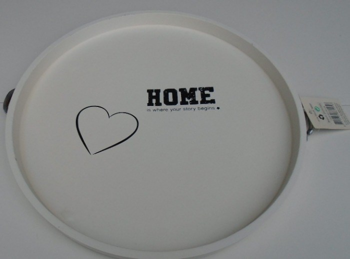 DIENBLAD ROND MDF WIT TEKST HOME NIEUW