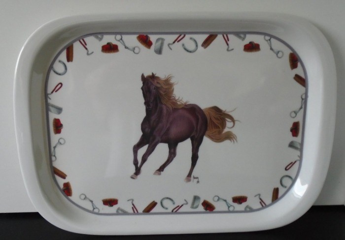 Leuk dienblad, u vindt verder allerlei artikelen die verband houden met het verzorgen van paarden.