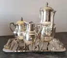 Uiterst zeldzaam thee- of koffieservies uit de Empire-periode in verzilverd.