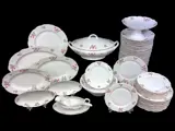 Servies voor 10 personen met tal van serveerelementen. Het servies is gemaakt door de fabriek van Epiag, het voormalige Tsjechoslowakije was een van de pionierslanden in de productie van uitstekend porselein.