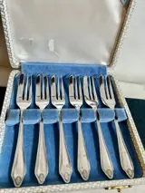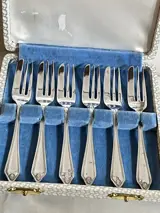 Set vorken voor dessert- Taart, Servies -- In verzilverd metaal -- Geregistreerd op EPNS-basis, begin 20e eeuw