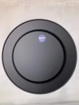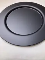 Lot van 12 stalen onderborden, gemoffeld, kleur mat zwart, diameter 30 cm, gewicht per stuk ca. 600 gram.