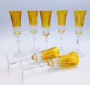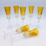 Maison Tatiana, 7 amberkleurige fluitglazen in geslepen, gebeiteld, mondgeblazen kristal Vintage van het bekende Fabergé maison, model; Keizerlijke collectie Xenia.