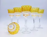 Maison Tatiana, 7 amberkleurige rode wijnglazen in geslepen, gebeiteld, mondgeblazen kristal Vintage van het beroemde huis Fabergé, model; Keizerlijke collectie Xenia.