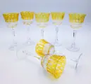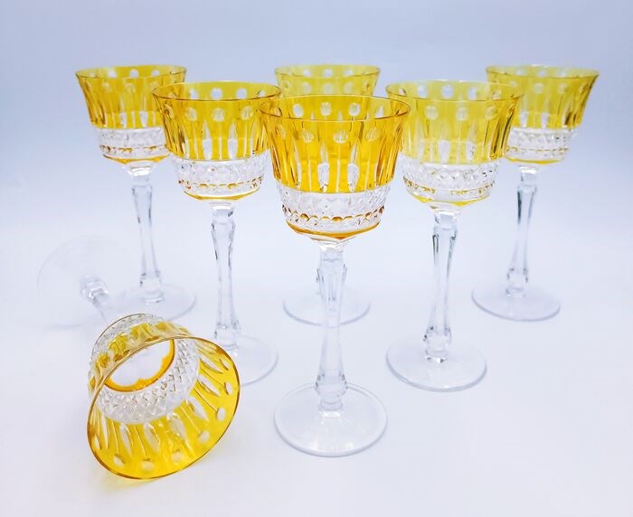Maison Tatiana, 7 amberkleurige witte wijnglazen in geslepen, gebeiteld, mondgeblazen kristal Vintage van het bekende Fabergé maison, model; Keizerlijke collectie Xenia.