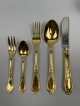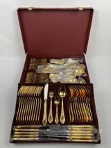 Firma 'Nici' Solingen Duitsland, 23/24 karaat verguld bestek in originele koffer.