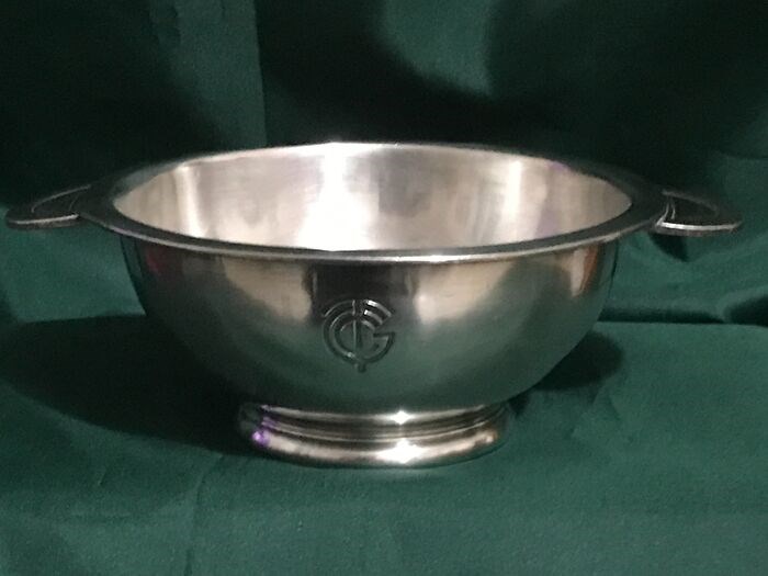 Serveerschaal in zilver metaal versierd met het monogram van de Compagnie Générale Transatlantique (CGT) voor de 1e klassen van de Paquebot Normandie, 1935