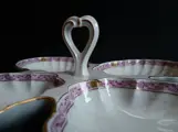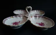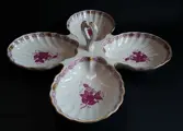 Herend handbeschilderde fijne porseleinen serveerschaal Fancy Dish - Hartvormig handvat - Herend Chinees boeket licht framboos / Apponyi lichtpaars - AP design.