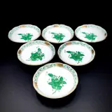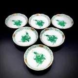 Schitterende set van 6 kaviaarschalen onderdeel van de "Chinese Bouquet" Collectie, Apponyi Green Color, geproduceerd door Herend - Hongarije, in uitstekende tot onberispelijke staat.