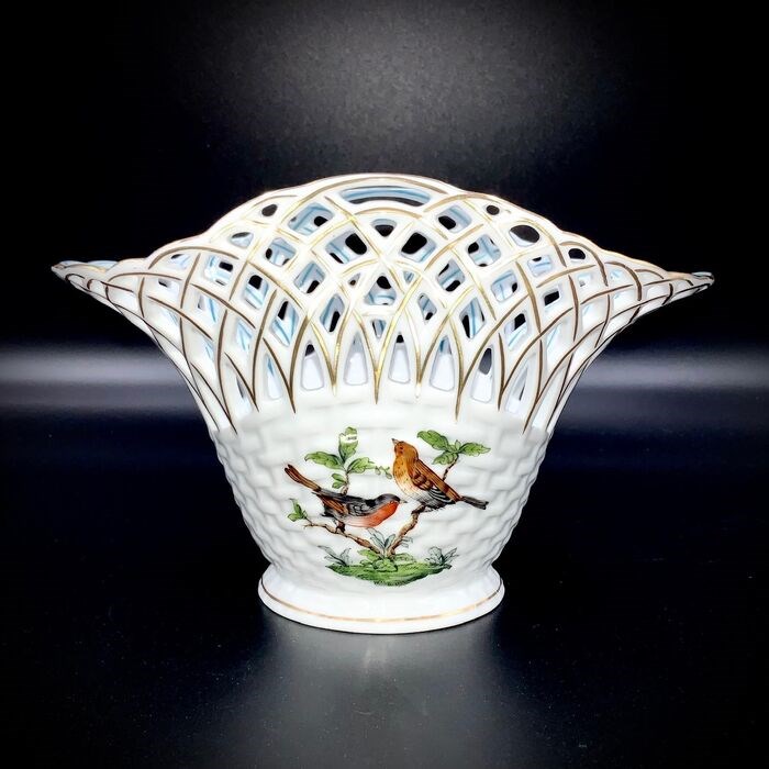 Fantastische doorbraak ovale mand geproduceerd door Herend, Hongarije, "Rothschild Bird" collectie, uiterst zeldzaam, in onberispelijke staat.