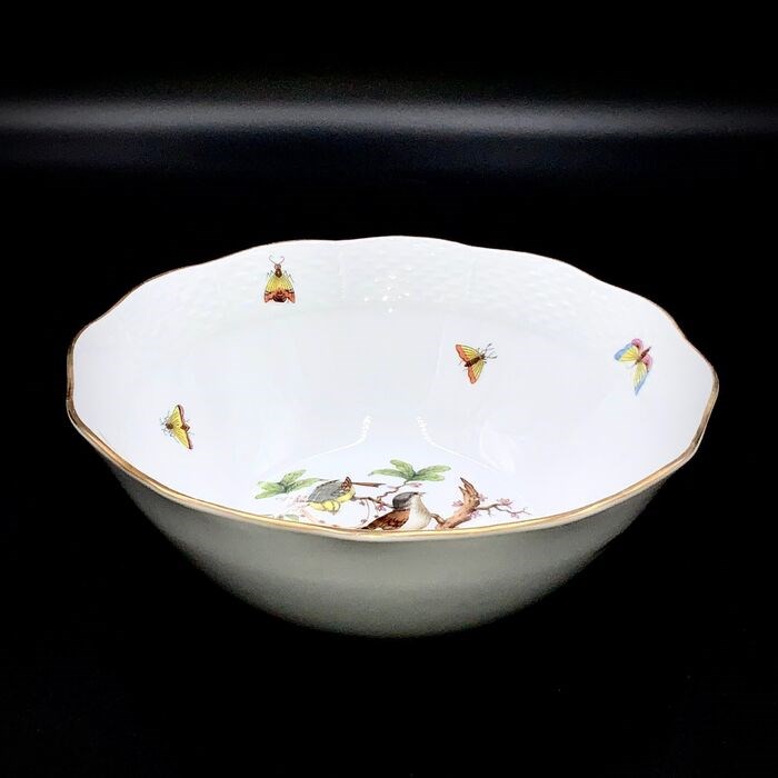 Prachtige grote serveerschaal geproduceerd door Herend - "Rotschild Bird" collectie, bekend handgeschilderd patroon met vogels tussen takken en verspreide insecten, in onberispelijke staat.