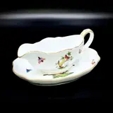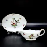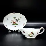 Prachtige sauskom en serveerschaal geproduceerd door Herend - "Rotschild Bird" collectie, bekend handgeschilderd patroon met vogels tussen takken en verspreide insecten, in uitstekende tot onberispelijke staat.
