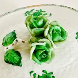 Het is met de hand beschilderd in groen met goud op een witte achtergrond volgens de originele methode van Hongaarse ambachtslieden.
