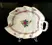 Prachtige bladvormige kom met handvat, fijn porselein, volledig met de hand beschilderd door Herend Hungary. Multicolor Appony-model zeldzamer dan de enkele kleur, het is aan de randen afgewerkt in puur goud.