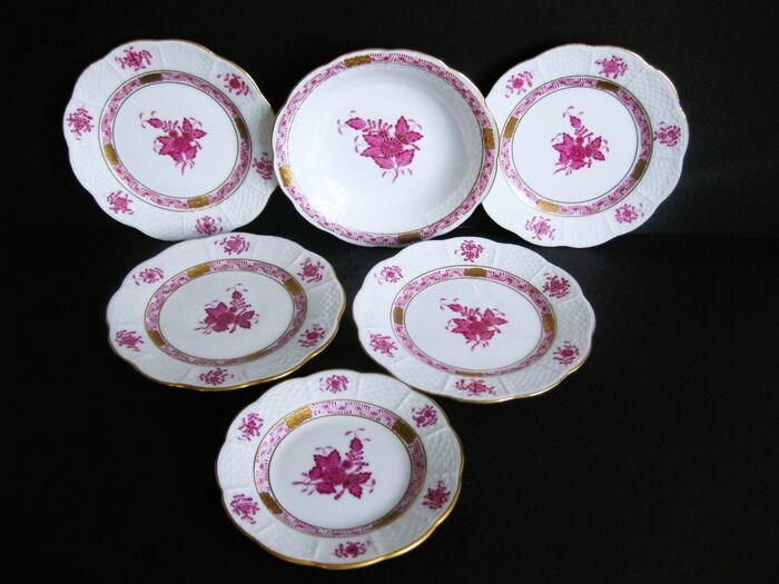 Herend schotels en een schaaltje - patroonChinese Bouquet "Apponyi Purple"