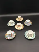 Een Hermès Paris porseleinen koffieservies model "Patchwork".