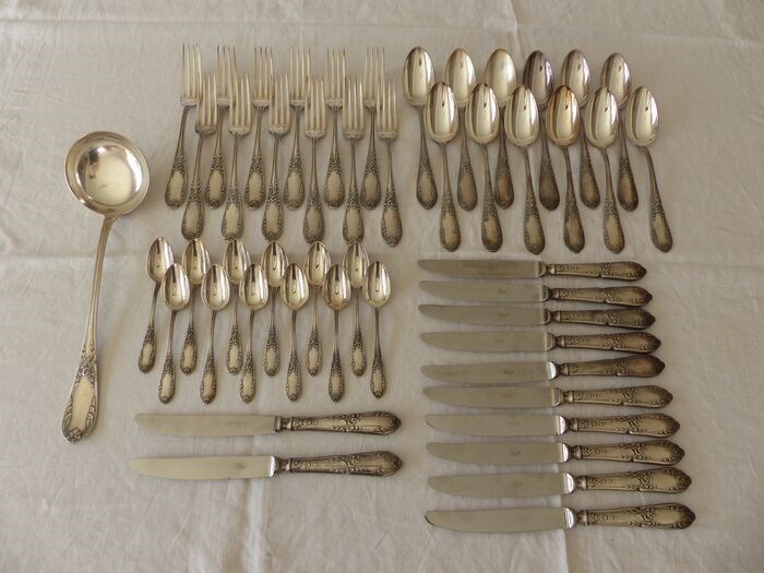 Floral art bestekset 49 delig van de goudsmid Chambly (Sfam) in zilver metaal.