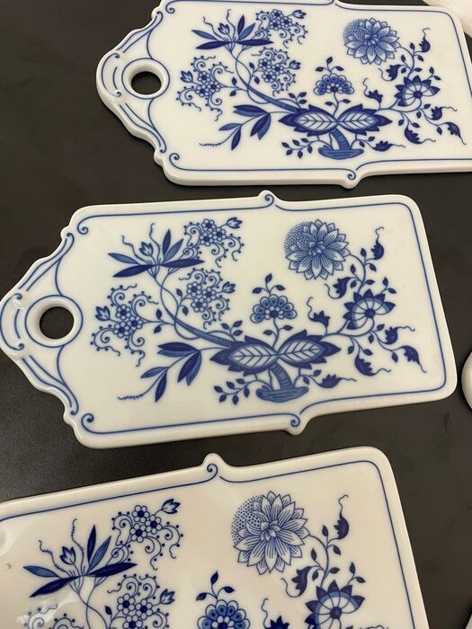 5 Hutschenreuther Vintage Ontbijtplank Wit Blauw Ui Patroon Snijplank Broodplank Kleine Kaasplank Uienplank Porselein