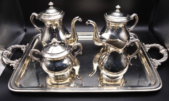 Prachtige set voor koffie gemaakt in nikkel zilver.