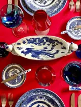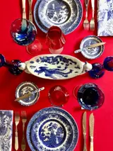 Tafelkleed met acht bijpassende servetten, in prachtig dieprood op een premium canvas stof voor tafelkleden, met een superieure kwaliteit ontworpen voor serviesgoed, die zijn kleur behoudt na het wassen in de machine, en met een prachtige textuur. Door zijn afmetingen past hij zich aan grote tafels aan.