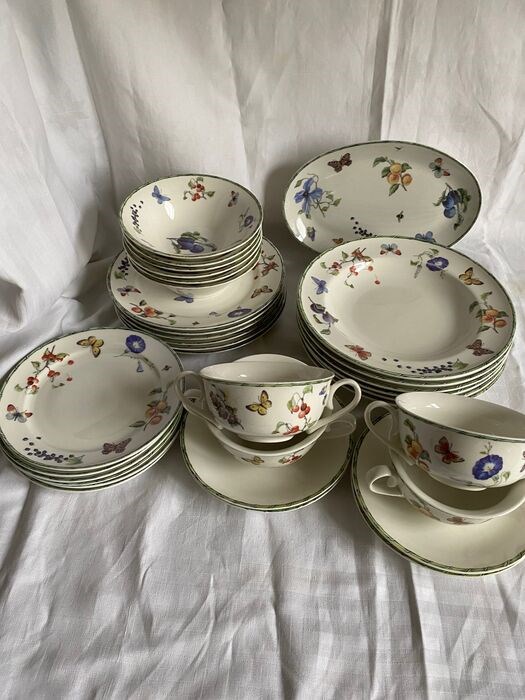 Fraai 33 delig porseleinen servies van het model Fruit and Flowers naar een ontwerp van Janneke Brinkman Salentijn.
