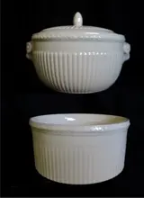 Het heeft neoklassieke kenmerken en een verfijnd reliëf ribbel-decor en fraai creme-wit glazuur