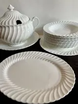 Uitzonderlijk servies, - Johnson Bros "Snowhite", Regency Style, Late S. XIX in Engels porselein, robuuste stukken van hoge kwaliteit - Gesigneerd en geregistreerd elk stuk in briljant zilver.