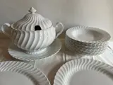 Alle stukken in zijn gemarkeerd op hun basis. Gesigneerd door het prestigieuze House of Johnson Bros, mod. "Snowhite, Regency" Made in England Ironstone, geregistreerd, in wit porselein, de diepte in reliëf en toon valt op !!