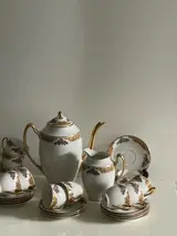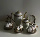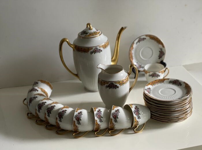 Schitterend koffieservies in fijn porselein uit Limoges Frankrijk gesigneerd Jean Boyer.