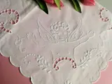 De kavel bevat 2 kussenslopen van puur perkaalkatoen met handgemaakte satijnsteek en opengewerkt borduursel.