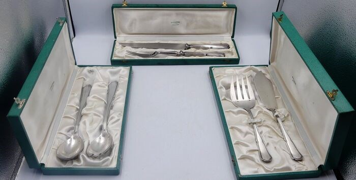 1 Doosje met 2 bestek om vis te serveren in zilver metaal