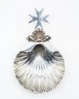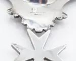 Verzilverde schelpvormige zakleger met Maltezer kruis en drie steunpoten. Het kruis, ook wel bekend als het kruis van St. John, was in ieder geval sinds de 11e eeuw het symbool van de maritieme republiek Amalfi. Het symbool is een achthoekig kruis (dwz met acht punten) van Byzantijnse oorsprong, waarschijnlijk daterend uit de 6e eeuw. Het ontwerp is gebaseerd op kruisen die sinds de Eerste Kruistocht werden gebruikt. Lengte 20cm.