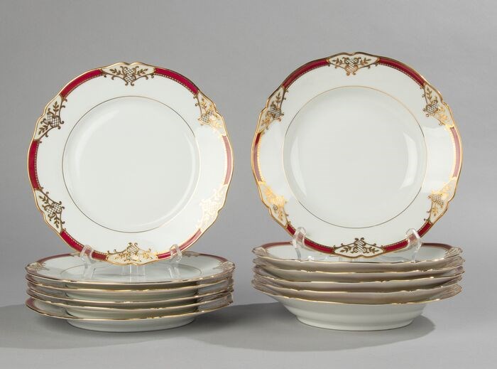 Prachtige set van 2 x 6 porseleinen borden van het Franse merk Limoges.