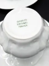 Limoges Giraud geschulpte koffiekop, met schotel. in zeer fijn wit porselein