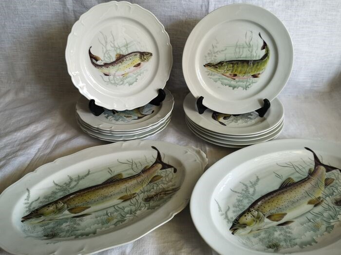 Een zeer elegante en klassieke visserviesset voor 12 personen van fijn Limoges-porselein.