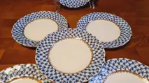 De keizerlijke porseleinfabriek opgericht in 1744 in St. Petersburg onder het decreet van de dochter van Peter de Grote keizerin Elizabeth. Prachtig handgeschilderd ontwerp verrijkt met 22k gouden accenten onder glazuur. Het originele Lomonosov-fabriekslogo bevindt zich aan de onderkant van elk stuk. Origineel artikel - 100% gegarandeerd. Handwas wordt aanbevolen.