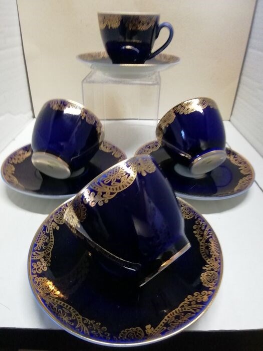 zeer fijn porselein en elegante decoratie in kobalt en goud