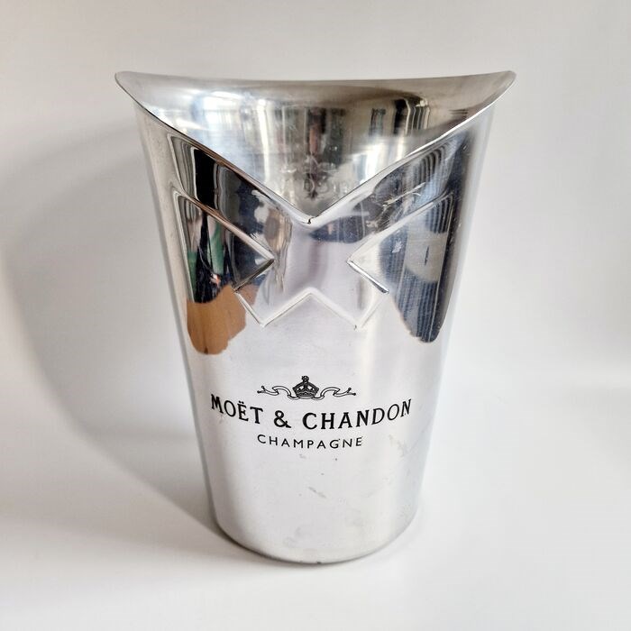 De ene kant is lang en elegant, de andere kant heeft een V-vorm met twee kruisende linten. Het heeft aan beide zijden een identieke gravure met het logo, de guirlandes en de kroon met de tekst: MOËT & CHANDON Fondeé et 1743.