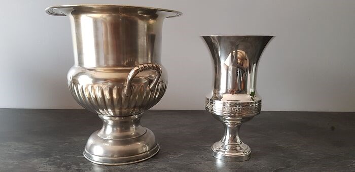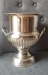 De handvatten zijn mooi bewerkt, ze geven elegantie aan deze champagne emmer.