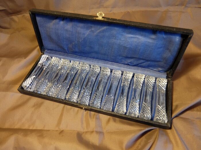 12 kristallen messenleggers, klasiek ontwerp zijn identiek en in gebruikte conditie.