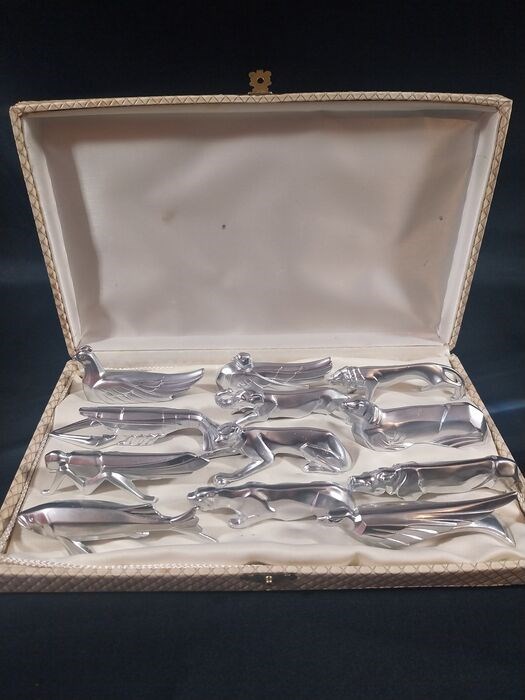 Doos met 12 zilverkleurige metalen messenhouders