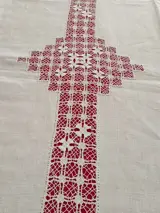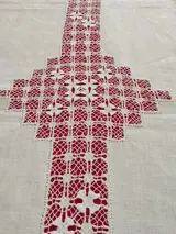 Mooi en groot tafelkleed met kant en borduursels.