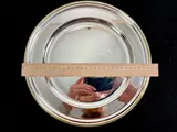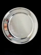 Verzilverd bord met vergulde boord in Perles-décor. Het stuk is in goede staat met vlekjes door oxidatie.
