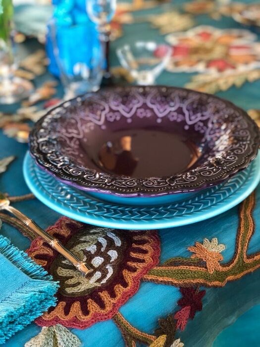 Organza tafelkleed van natuurlijke zijde, met de hand
