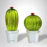 Prachtig paar Murano glazen cactussen handgemaakt en gedecoreerd met echt bladgoud door een van de beste glasmeesters van het eiland, Lorenzo Ferro.