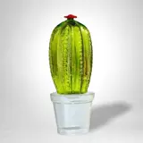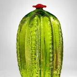 De cactussen zijn gemaakt op een groen gekleurde glazen achtergrond en vervolgens verpakt in 24-karaats bladgoud wat hun waarde en uitstraling versterkt. De voet daarentegen is gemaakt van transparant glas.