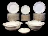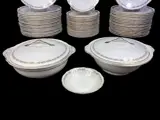 Zeldzaam en kostbaar servies voor 18 personen in sterk aardewerk. De versiering op de rand doet denken aan de vorm van korenaren, randen in 24kt puur goud. Servies geproduceerd in de jaren 1950 door Pagnossin uit Treviso, elk element is aan de onderkant gemerkt met de historische gestileerde engel van Pagnossin: