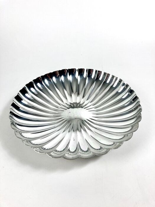 Prachtige ronde diepe schaal met lobben, gemaakt door de bekende Spaanse zilversmid Pedro Duran in verzilverd Alpaca (lijn Alpadur). De schaal doet uitstekend dienst voor fruit, of om oesters te serveren.