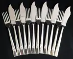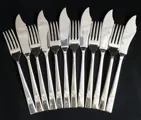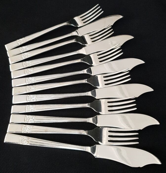 12-delige viseterset, zwaar verzilverd bestek, patroonaansluitingen, minimaal gebruik, uitstekende kwaliteit en staat.
